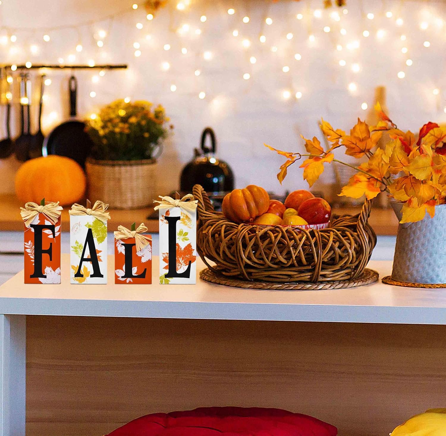 Gift Boutique Thanksgiving Fall Table Block Set of 4 Autumn Wooden Signs Blocks for Tiered Tray Tabletop Centerpieces Mantle & Home Office Decorations