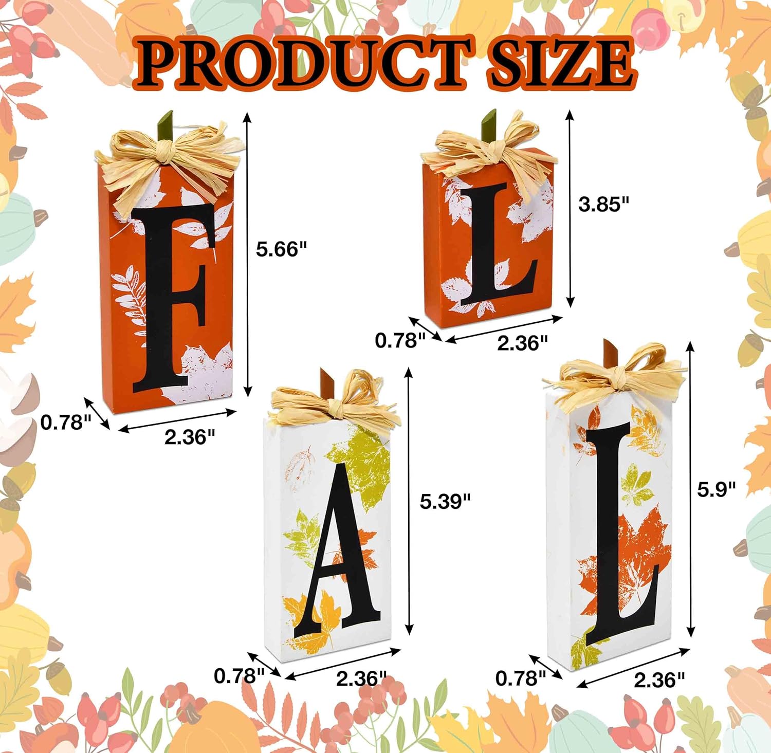 Complete Set: Our 4 piece fall decor set includes four wooden letter signs; F sign 2.36″ x 0.78” x 5.66″; A sign 2.36” x 0.78” x 3.85”; & two L signs 2.36” x 0.78” x 5.39” & 2.36” x 0.78” x 5.9”; perfect for autumn themed decor