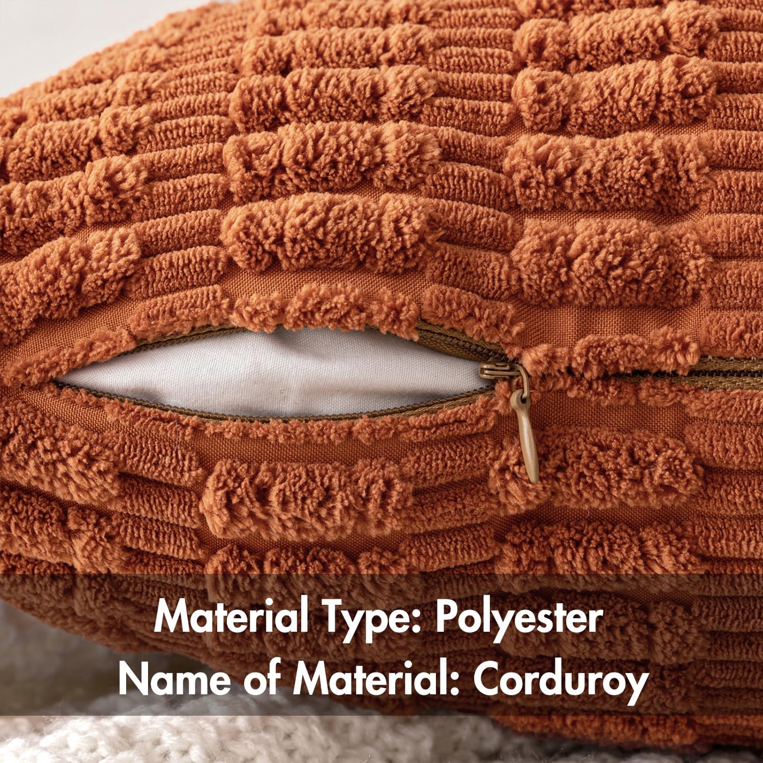 MIULEE Fall Pack of 2 Corduroy Decorative Throw Pillow Covers 18×18 Inch Soft Boho Striped Pillow Covers Modern Farmhouse Home Decor for Sofa Living Room Couch Bed Rust