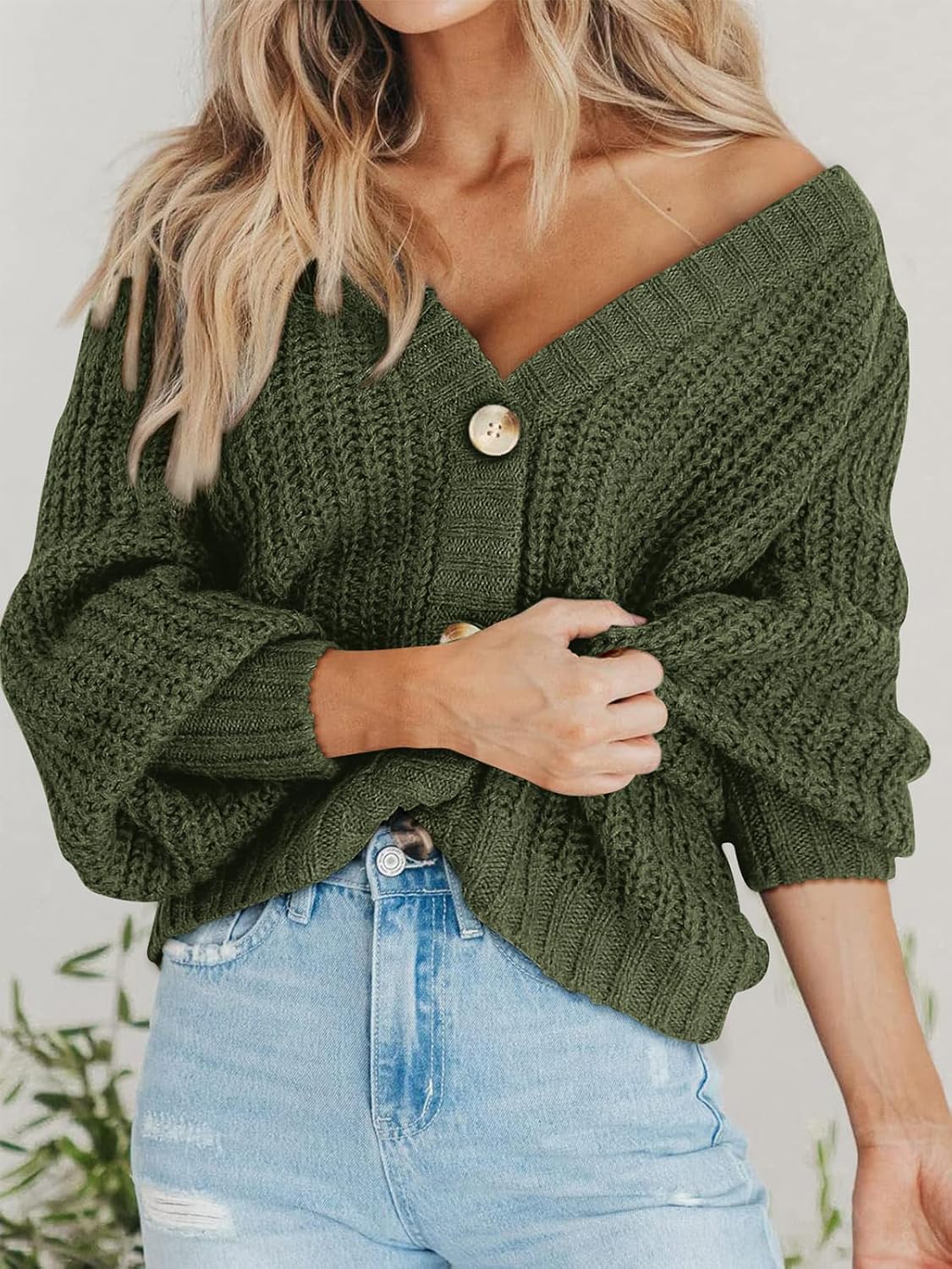 Solid Color Womens Cardigan V Neck Chunky Knit Fall Cardigans for Women 2025 Loose Sweater