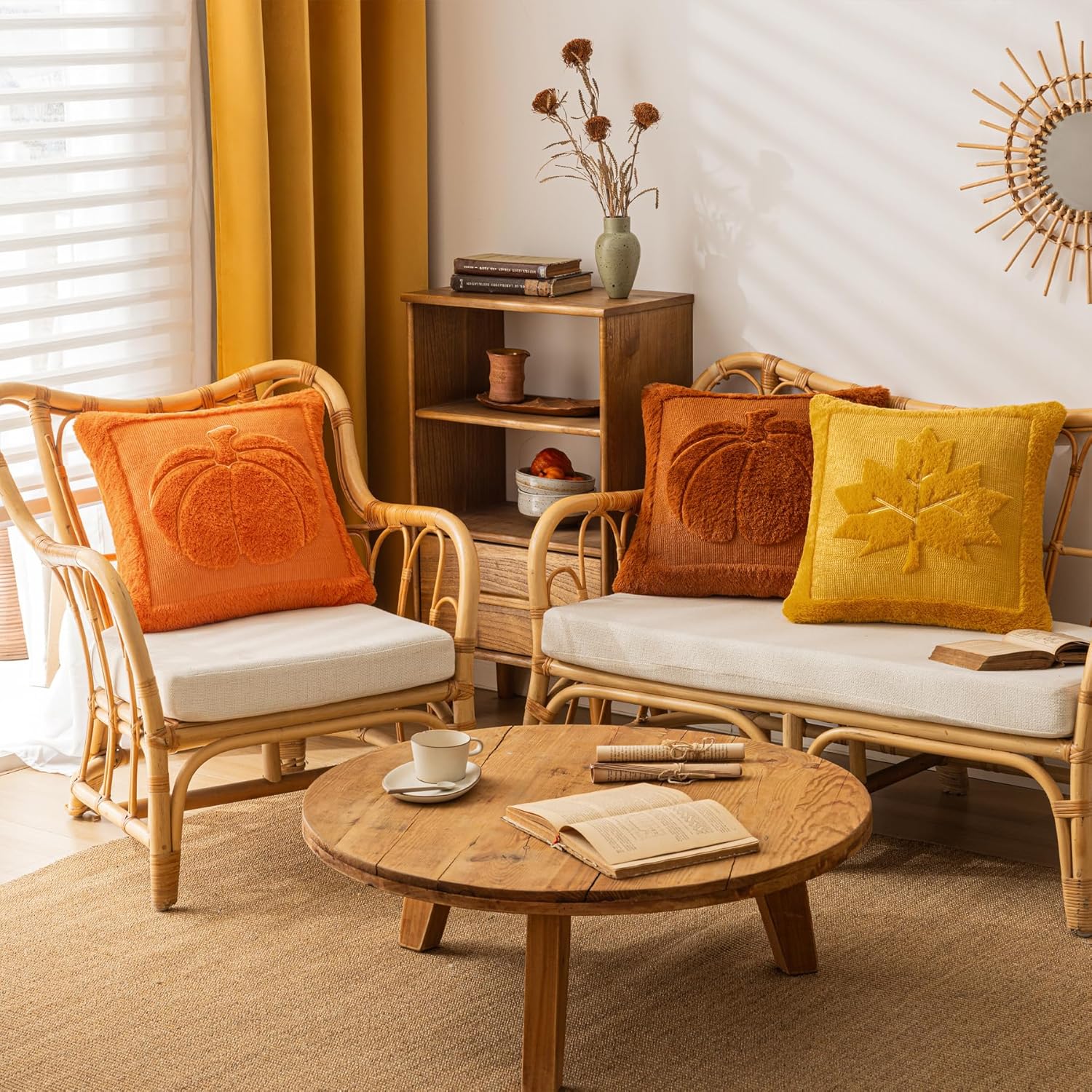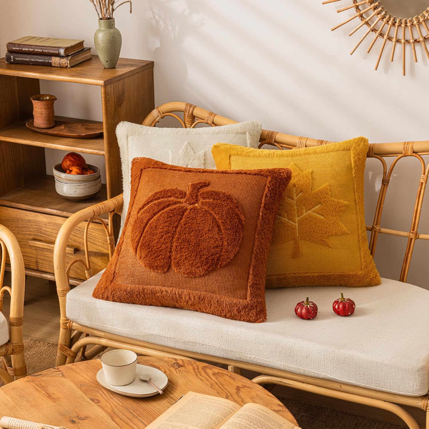 【Big Pumpkin Design for Fall Vibes】Each cute pumpkin pillow cover features a charming, full-bodied pumpkin crafted with detailed 3D embroidery—perfect for creating a warm and festive autumn atmosphere in your home.