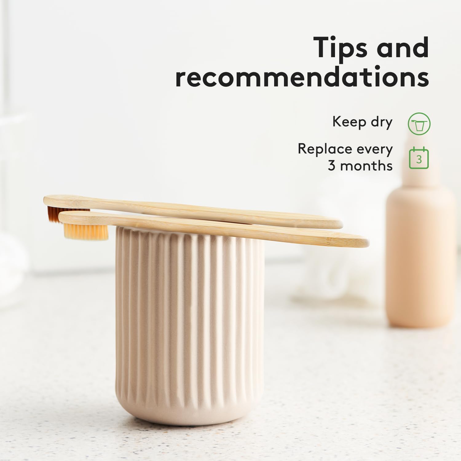 Customers appreciate the toothbrush’s soft bristles that feel good on gums and effectively clean teeth without damaging gums. The eco-friendly product features bamboo handles and colored bristles that help with quick identification, offering good value for money. While some customers report the bristles hold up indefinitely, others mention they fall out quickly.